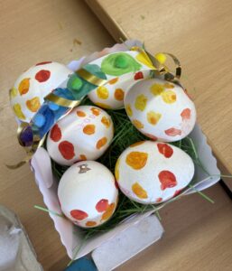 Es ostert sehr an der EGS Hangelar Die letzte Schulwoche vor den Ferien hat begonnen und überall wird fleißig für Ostern gebastelt und gemalt. Hier kommen ein paar Impressionen der Klasse 1b.